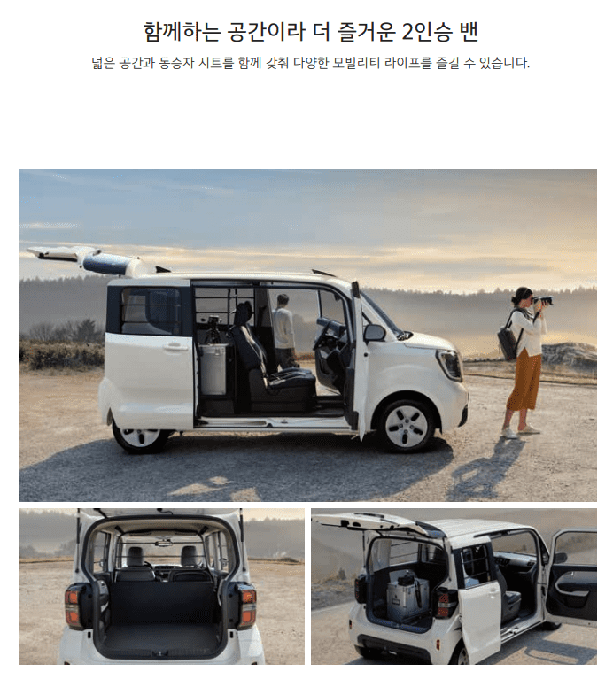 그래서 차박도 가능하고 짐도 많이 실을 수 있어서 실용성이 뛰어난 레이EV입니다.