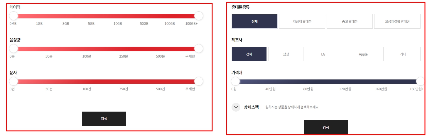 알뜰폰 요금제 비교 사이트도 알아봤고 필터를 걸어 다양한 상품을 검색해 볼 수 있다는 걸 알아봤습니다.