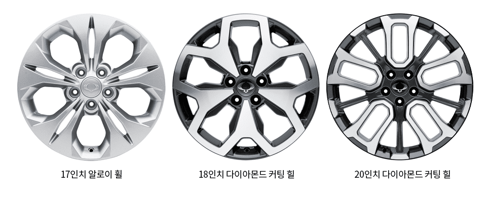 마지막으로 확인해 볼 디자인은 휠 디자인입니다. 휠도 꽤 이쁜 것 같습니다. 토레스 소비자들 사이에서는 18인치 다이아몬드 커팅 휠이 가장 많은 선택을 받았다고 합니다.