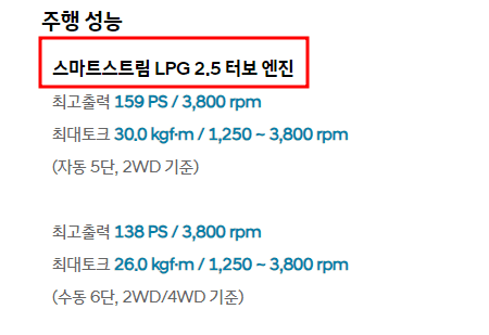 마지막으로 포터2 LPG 제원에 대해 살펴보겠습니다.